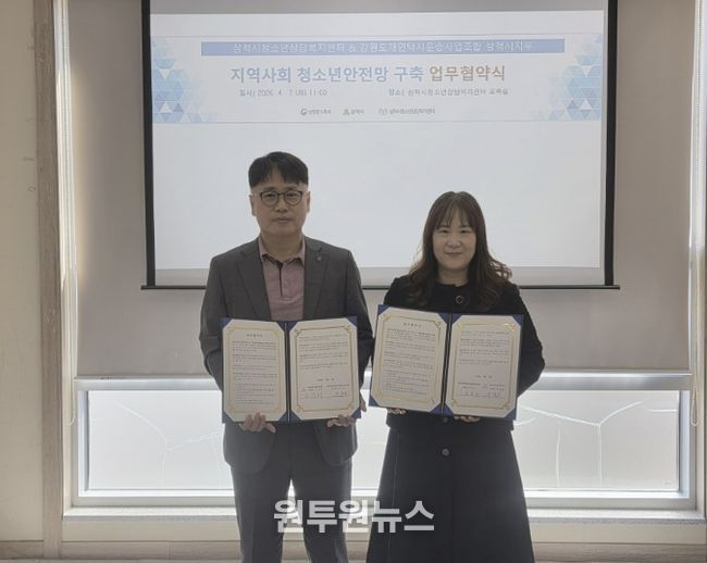 (원투원뉴스) 삼척시청소년상담복지센터와 강원도개인택시운송조합 삼척시지부는 4월 7일 센터 교육실에서 지역사회 청소년 안전망 구축을 위한 업무협약(MOU)을 체결했다.