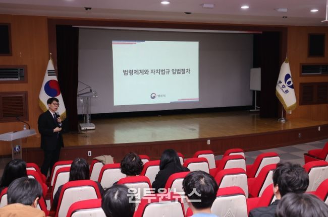 이날 교육에서는 서용우 법제처 위촉 교수가 4시간 동안 ‘자치법규 입안 원칙(기본)’과 ‘자치법규 입안 실무3_알기 쉬운 법령 만들기’를 강의했으며, 이경아 사무관이 ‘법령 체계와 자치법규 입법절차’에 관한 내용을 전달했다.