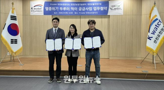 (원투원뉴스) 연천군농업기술센터는 오는 4월 9일, K-water 연천포천권지사에서 K-water 및 연천군 율무연구회와 함께 ‘멸종위기 두루미 먹이 공급사업’을 위한 업무협약(MOU)을 체결한다고 밝혔다.