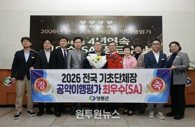 (원투원뉴스) 충북 영동군이 한국매니페스토실천본부 주관의 2026 민선8기 전국 기초단체장 공약이행 및 정보공개 평가에서 4년 연속 최고 등급인 SA등급을 획득했다.
