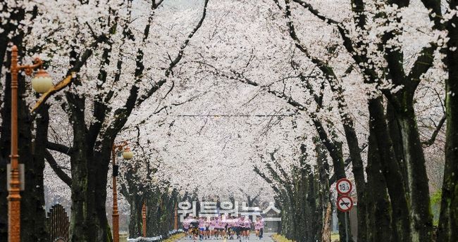 2일 차인 10일에는 아침 7시부터 마이산 남부 벚꽃길 모닝런이 진행됐다. 봄비에 촉촉하게 젖은 벚꽃길을 지나 종착지인 마이산 탑사에 다다르자, 비안개에 휩싸인 돌탑 군락이 뿜어내는 압도적이고 신비로운 풍경에 참가자들 사이에서는 일제히 감탄의 탄성이 터져 나왔다.
