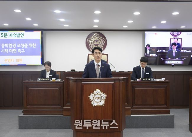 (원투원뉴스) 동두천시의회 권영기 의원(국민의힘, 나 선거구)은 지난 10일 제345회 동두천시의회 임시회 개회식 5분 자유발언을 통해, 안전한 통학환경 조성을 위한 시책 마련을 촉구했다.