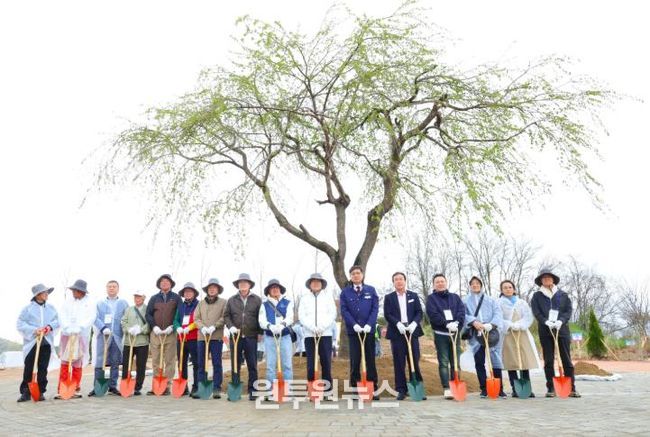 특히 본격적인 나무심기에 앞서 진행된 감사패 전달식에서는 재일본대한민국민단 고(故) 박병헌 단장(2021년 작고)의 공로를 기리며 아들 박상규 씨(한일친선협의중앙회 이사)에게 감사패가 전달됐다.