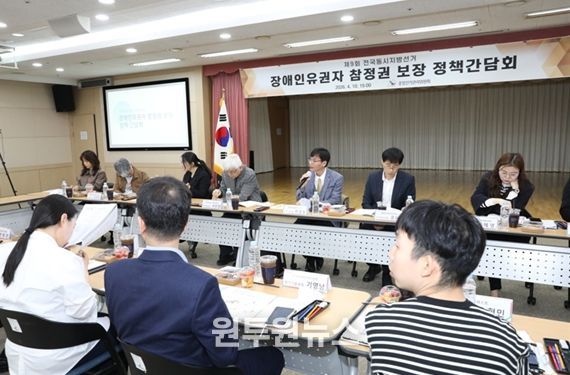 (원투원뉴스) 중앙선거관리위원회는 4월 10일 서울 여의도 이룸센터에서 장애인 유관 단체 및 협회 등과 제9회 전국동시지방선거를 대비하여 ‘장애인유권자 참정권 보장 정책간담회’를 개최했다.