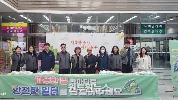 (원투원뉴스) 원주시는 지난 9일 시청 로비에서 안전보건공단 강원지역본부, 고용노동부 원주지청과 함께 ‘고객응대근로자 보호 합동 캠페인’을 전개했다.