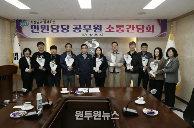 (원투원뉴스) 상주시는 4월 10일 시청 소회의실에서 2026년 1분기 민원처리 우수 공무원 시상식과 함께 민원담당공무원들과의 소통 간담회를 개최했다.
