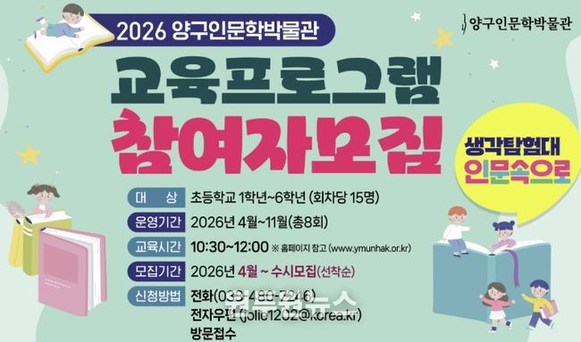 임경빈 양구인문학박물관장은 “이번 프로그램을 통해 아이들이 철학과 문학을 어렵게 느끼지 않고, 탐험하듯 즐겁게 접하며 창의적인 사고력을 기를 수 있기를 바란다”며 “지역 어린이들의 정서적 성장을 돕는 유익한 시간이 될 수 있도록 운영에 최선을 다하겠다”고 말했다.