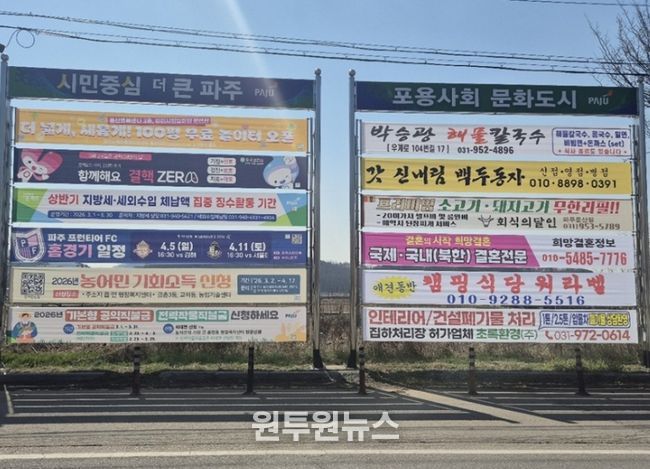 한편, 파주시는 현재 245기의 현수막 지정게시대를 운영 중이며, 노후시설을 연차적으로 교체해 안전하고 체계적인 관리 체계를 구축해 나갈 계획이다.
