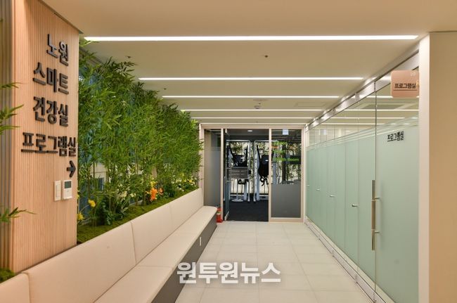 2층에 들어설 시설 중 가장 대표적인 것은 노원구 내 최초로 선보이는 ‘스마트 건강실’이다. AI 기반의 스마트 운동기구 10대가 설치되어 개인별 근력·신체기능·노화 정도에 맞춰 운동을 지원한다. 바이오시스템으로 건강 상태를 측정 후 개인별 수준에 맞는 중량이 자동 조정되어, 어르신들이 안전하게 운동할 수 있다. 개인별 운동 지도를 위해 사전 예약제로 운영되며, 4월 13일~ 30일은 사전 체험 기간, 5월 4일부터 정식 운영된다.