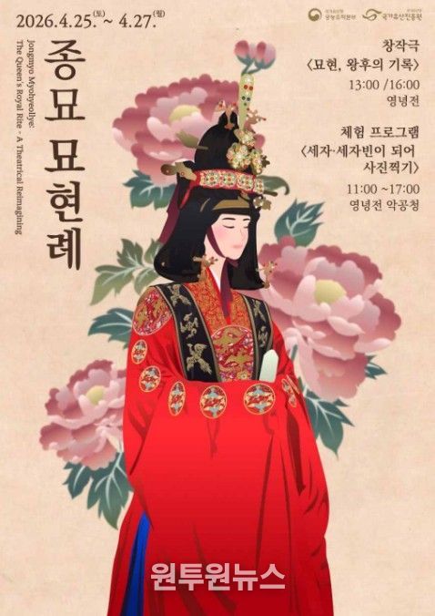 (원투원뉴스) 국가유산청 궁능유적본부는 국가유산청 산하 국가유산진흥원과 함께 4월 25일부터 27일까지 3일간 종묘(서울 종로구)에서 2026년 '종묘 묘현례'행사를 개최한다.