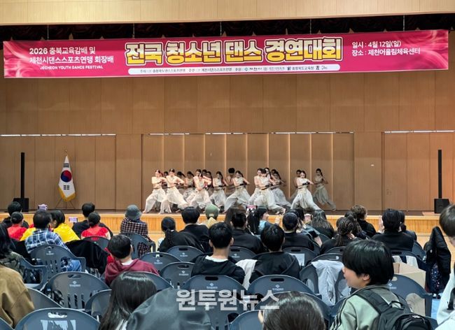 (원투원뉴스) 제천시에서 개최된 '2026 충북교육감배 겸 제천시댄스스포츠연맹회장배 전국 청소년 댄스경연대회'가 전국 청소년들의 뜨거운 열기 속에 성황리에 마무리됐다.