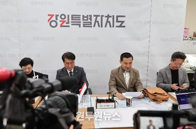 김진태 강원특별자치도지사는 기자간담회 자리에서 “지금까지 도지사 주재 기자간담회를 147차례 개최해 왔다”며, “내일 예비후보 등록 이후에는 여중협 행정부지사 권한대행 체제로 전환된다”고 밝혔다.