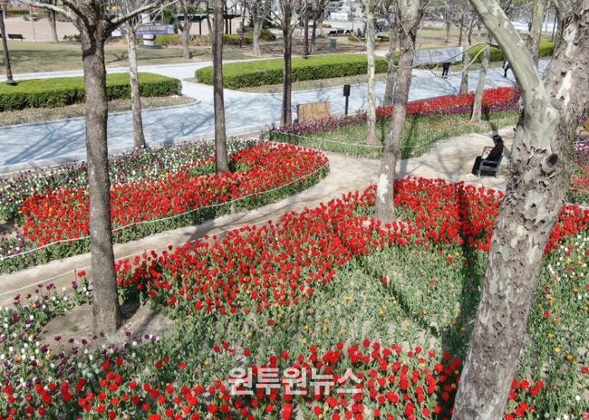 지난해 가을에 식재한 9만본의 튤립, 수선화를 포함해 총 13만6,000본의 형형색색 봄꽃이 만개했다.