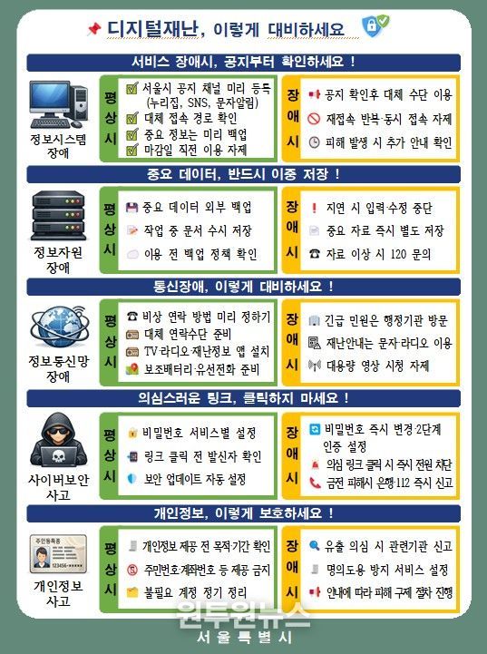 서울시는 디지털재난 발생 시 시민이 즉시 활용할 수 있는 행동요령도 체계적으로 마련했다. 이는 장애 발생 시 정보 부족으로 혼란이 확대되는 문제를 줄이고, 시민 스스로 대응할 수 있도록 하기 위한 것이다.
