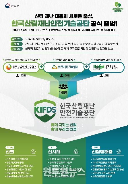 (원투원뉴스) 산림청은 ‘한국산림재난안전기술공단(이사장 이임영)’이 지난 10일 공식 출범했다고 밝혔다. 이번 공단 출범은 ‘산림재난방지법’ 시행에 맞춰 산림이라는 동일 공간에서 연계 발생하는 다양한 재난에 보다 선제적이고 신속하게 대응하기 위한 기반을 마련했다는 점에서 의미가 있다.