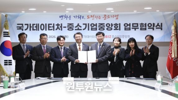 (원투원뉴스) 국가데이터처는 4월 14일 서울 여의도 중소기업중앙회에서 경제통계 개선과 기업의 통계조사 참여 활성화를 위해 중소기업중앙회(상근부회장 오기웅)와 업무협약(MOU)을 체결했다.