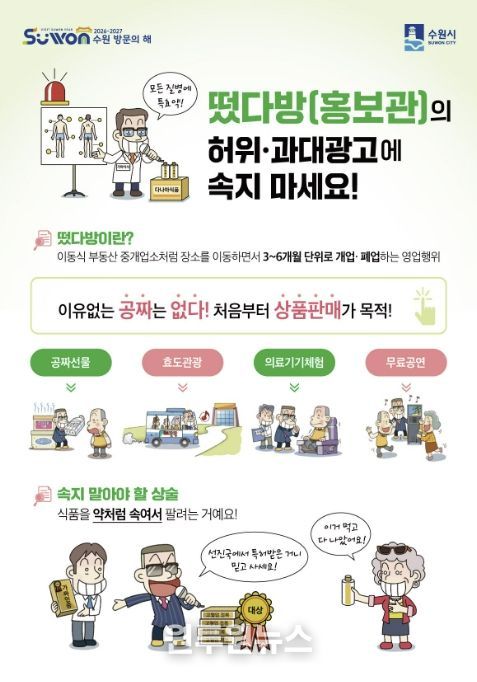 수원시 관계자는 “사전 예방과 점검을 병행해 피해를 차단하겠다”며 “의심스러운 판매를 접한 어르신들께서는 즉시 신고해 주시길 바란다”고 말했다.