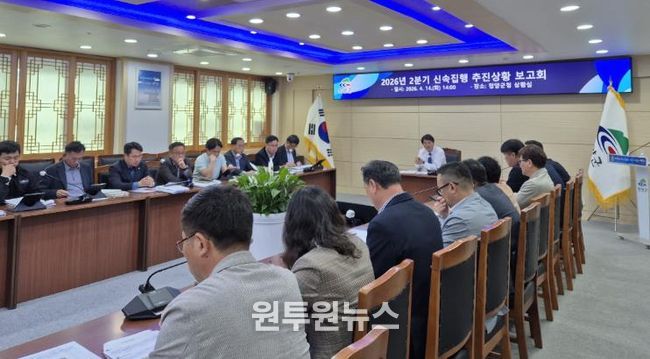 (원투원뉴스) 청양군은 지난 14일 군청 상황실에서 전상욱 부군수 주재로 부서장 등 관계 공무원들이 참석한 가운데 ‘2026년 2분기 신속집행 추진상황 보고회’를 개최하고 재정 집행 속도 조절에 나섰다.