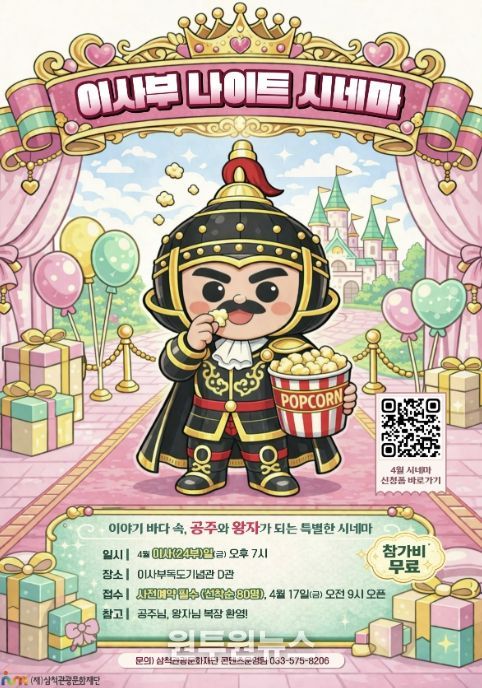 (원투원뉴스) 삼척관광문화재단은 이사부독도기념관에서 매월 24일 운영하는 야간 문화 프로그램'이사부 나이트 시네마'를 통해 시민 대상 문화 향유 기회를 확대한다.