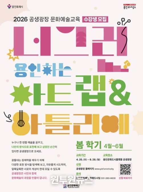 (원투원뉴스) 용인문화재단은 4월 8일부터 ‘2026 공생광장 문화예술교육 '너그런 아트랩&아틀리에'’ 봄학기 수강생을 모집한다.