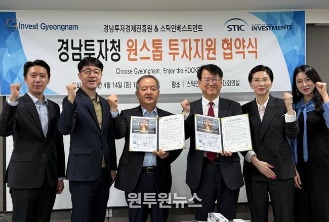 (원투원뉴스) 경남투자경제진흥원 부설 경남투자청은 14일 서울 소재 스틱인베스트먼트 대회의실에서 10조 원 규모의 운용자산(AUM)을 보유한 스틱인베스트먼트와 원스톱 투자지원 협약을 체결했다고 밝혔다.