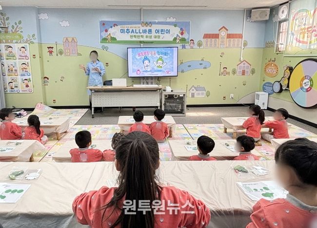 (원투원뉴스) 인천 미추홀구 어린이·사회복지 급식 관리 지원센터(센터장 정현정)가 어린이들의 감염병 예방과 올바른 위생 습관 형성을 위해 체험형 교육 프로그램 ‘미추ALL바른 어린이–반짝반짝 위생 대장-’을 운영한다.