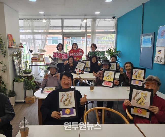 '행복 담은 화실'은 어르신들의 인지능력 향상과 고독감 해소를 위해 마련된 신장2동 대표 정서지원 사업으로, 이번 4월 프로그램은 ‘민화, 봄을 그리다’를 주제로 진행됐다. 참여 어르신들은 우리 전통 민화의 다채로운 색감을 활용해 작품을 완성하며 계절의 변화를 느끼고 정서적 풍요로움을 체험하는 시간을 가졌다.