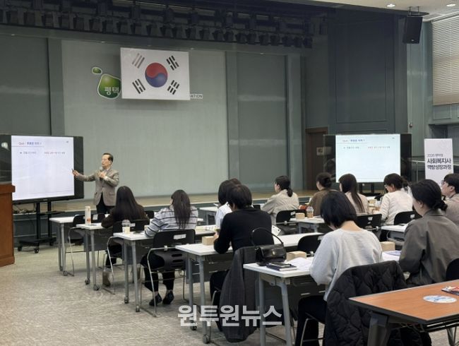 (원투원뉴스) (재)평택복지재단은 4월 14일, 팽성복지타운 2층 대강당에서 관내 사회복지시설 종사자 50여 명을 대상으로 '2026년 사회복지사 역량성장 과정' 3회기 교육을 성공적으로 개최했다.