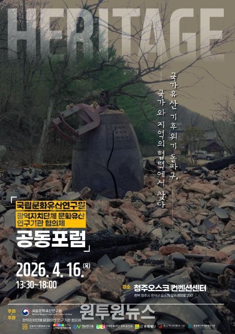(원투원뉴스) 경기문화재단 경기역사문화유산원은 국립문화유산연구원과 전국 7개 광역 문화유산 연구기관(경기, 강원, 충남, 충북, 경남, 경북, 전남)과 함께 오는 4월 16일 청주 오스코(OSCO)에서 ‘국가유산 기후위기 돌파구, 국가와 지역의 협력에서 찾다’를 주제로 공동포럼을 개최한다.