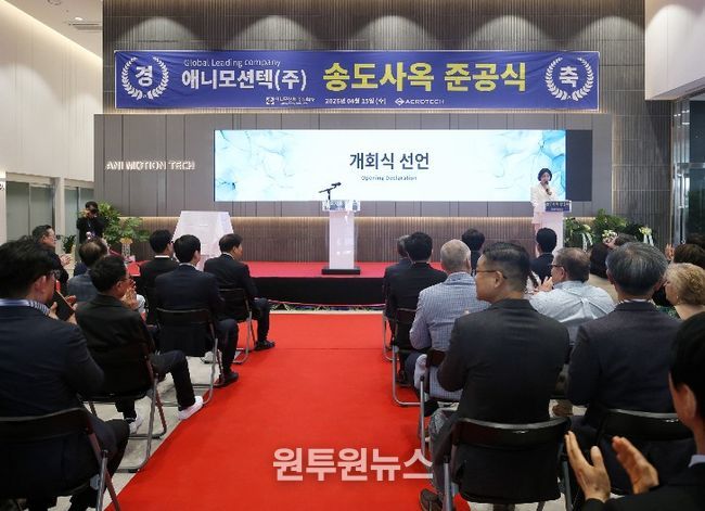인천경제자유구역청은 4월 15일 송도 지식정보산업단지 내 애니모션텍 신사옥에서 준공식을 개최했다고 밝혔다.