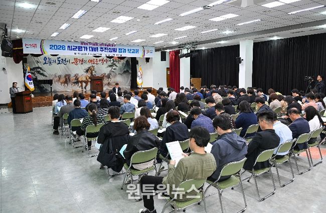 (원투원뉴스) 문경시는 4월 15일 시청 대회의실에서 이동욱 문경시장 권한대행 주재로 각 부서 지표담당자 120여 명이 참석한 가운데 ‘2026년 시군평가 추진상황 점검 보고회’를 개최했다.