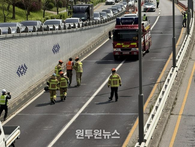 이날 훈련은 용인서부소방서와 용인동부경찰서가 함께 참여한 가운데 집중호우로 인해 지하차도 내부에 침수가 발생한 상황을 가정해 이뤄졌다.