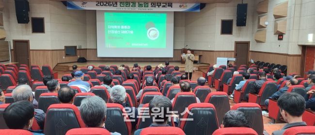 (원투원뉴스) 부여군은 지난 15일 오후 2시 농업기술센터 대강당에서 관내 친환경 농업인 및 교육 희망 농가 100여 명을 대상으로 ‘2026년 친환경 농업 의무교육’을 개최했다.