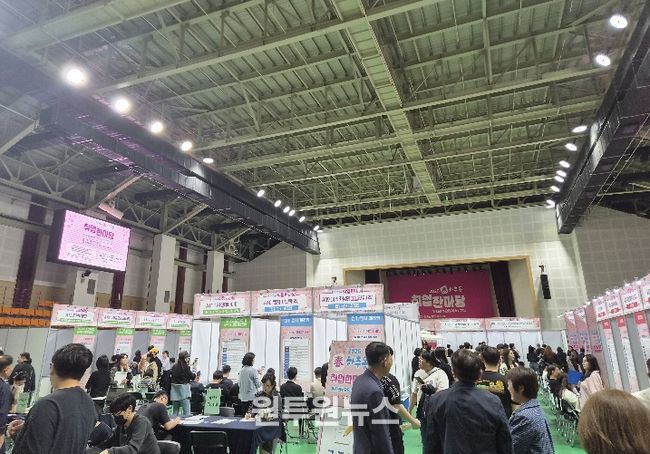 (원투원뉴스) 구미시는 지난 15일 구미복합스포츠센터에서‘2026 春하추동 취업한마당(부제: 구미가 당기는 JOB 페스티벌)’을 성황리에 마쳤다고 밝혔다. 이번 행사는 구미시, 고용노동부 구미지청이 공동 주최하고 취업 유관기관이 공동 주관하여 개최됐다.