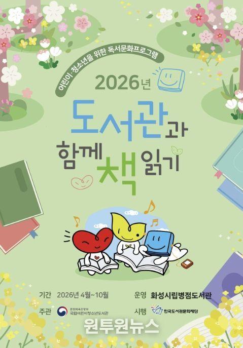 (원투원뉴스) (재)화성시문화관광재단 병점도서관이 국립어린이청소년도서관이 주최하는 ‘2026년 도서관과 함께 책 읽기’ 공모사업 수행기관으로 선정되어 프로그램을 4월부터 10월까지 운영한다고 밝혔다.