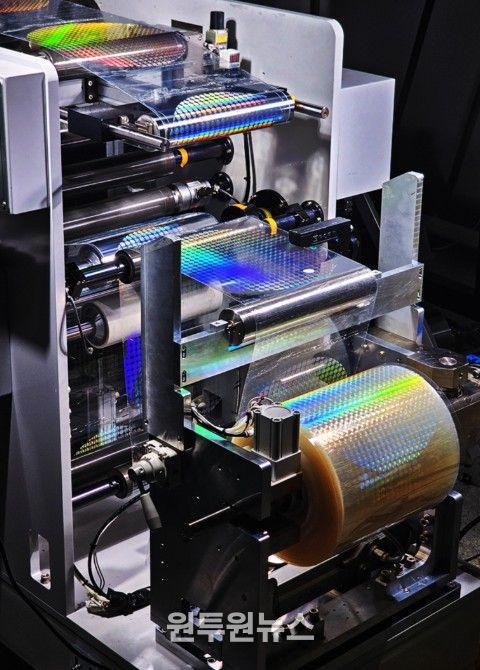 기존에는 딱딱한 니켈 금형을 사용하여 메타렌즈를 하나씩 제작했으나, 연구팀은 유연한 소재의 고분자 복제 금형을 12인치 면적의 원통형 롤러로 만들었다. 이를 통해 롤러를 회전시켜 마치 신문을 인쇄하듯 렌즈를 연속적으로 인쇄할 수 있도록 공정을 구현하는 데 성공했다. 특히 고분자 복제 금형의 내구성과 해상도를 극대화하기 위해 특수 개발한 표면처리 기술을 도입하여, 200m 길이의 연속 공정에서도 첫 번째 제작 렌즈와 마지막 제작 렌즈의 성능 편차가 없는 수준까지 대량 생산의 신뢰성을 끌어올렸다.