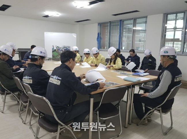 이날 참석자들은 ▲떨어짐 ▲끼임 ▲부딪힘 3대 사고를 중심으로 공사 현장을 세심히 살피고, 방호조치 상태와 건축자재 정리정돈 상태 및 작업자들의 안전수칙 준수 여부를 확인했다.