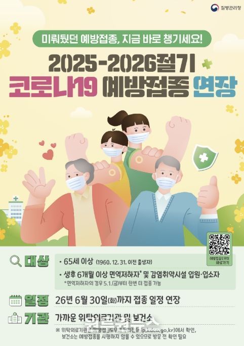 (원투원뉴스) 포천시는 여름철 코로나19 유행에 대비해 4월 30일에 종료 예정이었던 2025~2026절기 코로나19 예방 접종 사업 기간을 오는 6월 30일까지 연장 운영한다고 밝혔다.