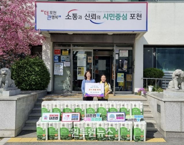 (원투원뉴스) 내촌면은 지난 15일 태사모봉사회에서 내촌면 저소득 계층을 위해 화장지(30롤) 95묶음을 경기사회복지공동모금회에 기탁하며 '이웃사랑 나눔 릴레이 53호'에 동참했다.