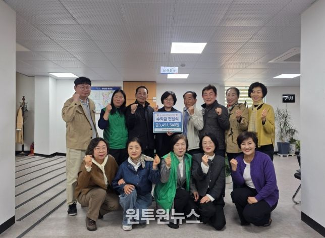 (원투원뉴스) 순천시 삼산동행정복지센터는 용당뚝방길벚꽃축제추진위원회가 지난 4일 개최한 ‘제12회 용당뚝방길 벚꽃축제’에서 발생한 수익금 345만여 원을 관내 취약계층을 위해 기탁했다고 밝혔다.