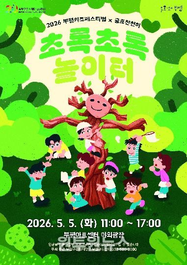 (원투원뉴스) 부평구문화재단은 어린이날인 5월 5일 부평아트센터 야외광장과 잔디마당에서 ‘2026 부평키즈페스티벌 × 굴포천천히’의 일환으로 ‘초록초록 놀이터’를 개최한다.