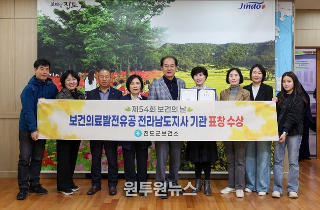 (원투원뉴스) 진도군보건소는 최근 ‘제54회 보건의날’ 기념식에서 군민의 보건과 건강 증진에 이바지한 공을 인정받아 ‘공공의료발전 유공기관’ 표창을 받았다.