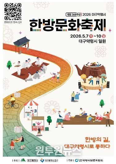 (원투원뉴스) 대구광역시와 대구광역시 중구가 주최하고 (사)약령시보존위원회가 주관하는 지역 대표 전통문화축제인 ‘2026 대구약령시 한방문화축제’가 오는 5월 7일부터 5월 10일까지 4일간 대구약령시(중구 약전골목) 일원에서 개최된다.