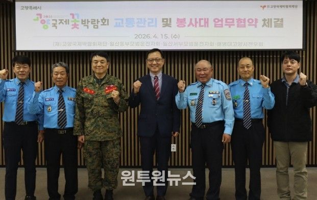(원투원뉴스) (재)고양국제박람회재단이 지난 15일 일산동·서부모범운전자회, 해병대고양시전우회와 함께 일산호수공원 고양꽃전시관에서‘2026고양국제꽃박람회 교통관리를 위한 업무협약’을 체결했다.