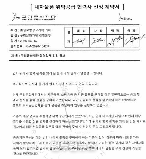 재단은 ‘내자물품 위탁공급 협력사 선정 계약서’ 등 실제 공문과 유사한 형식의 문서를 활용해 협력업체 선정을 통보하고, 물품 대리구매 등을 유도하는 사례가 확인됐다고 밝혔다.