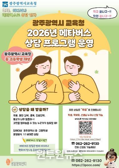 (원투원뉴스) 광주시교육청은 학생들의 심리·정서를 더욱 촘촘하게 살피기 위해 ‘2026년 메타버스 상담 프로그램’을 개편 운영한다.