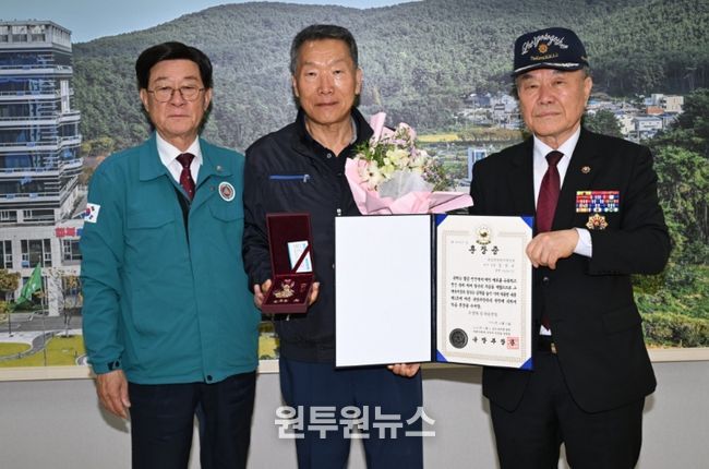 (원투원뉴스) 기장군은 지난 10일 기장군청 군수실에서 6.25전쟁 참전유공자의 공훈을 기리고 명예를 선양하기 위한 ‘무공훈장 전수식’을 개최했다고 16일 밝혔다.