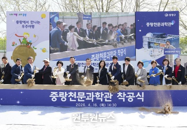 (원투원뉴스) 중랑구는 4월 16일 오후 2시 30분, 면목동 용마폭포공원(면목동 1316-8)에서 ‘중랑천문과학관’ 건립공사 착공식을 개최했다. 이번 사업은 미래 과학 인재 양성을 위한 기반 조성의 일환으로, 천문과학관은 2027년 상반기 개관을 목표로 추진된다.