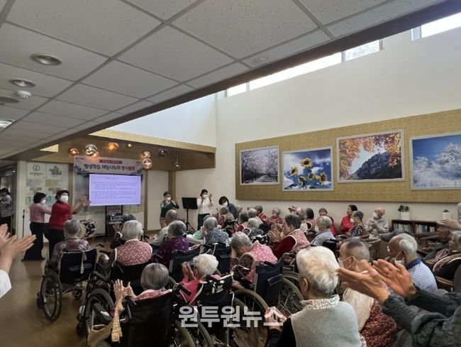 (원투원뉴스) 용인특례시는 평생학습관 재능나누미 교육 수강생들이 16일 처인구 역북동에 있는 대한간호노인요양원을 찾아 노인들을 대상으로 인지기능 향상을 위한 프로그램을 진행했다고 17일 밝혔다.