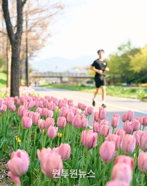 (원투원뉴스) 서울 강동구는 봄을 맞아 화사한 튤립과 수선화가 만개한 고덕천 산책로가 도심 속 힐링 명소로 주목받고 있다고 밝혔다.